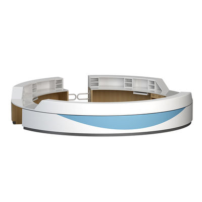 1. Das Krankenhaus Front Desk ist ein fachkundiges Möbelstück speziell bestimmt für zahnmedizinische Krankenhäuser, Privatkliniken, pädiatrische Anlagen und andere Gesundheitsweseneinrichtungen. Seine einzigartige Kreisform und weiße und blaue Farbkombination schaffen eine freundliche und beruhigende Atmosphäre.